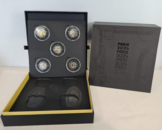 Coffret + 5 x 2 Euros Commemorative BU France JO Paris 2024 avec 2€ Eiffel !