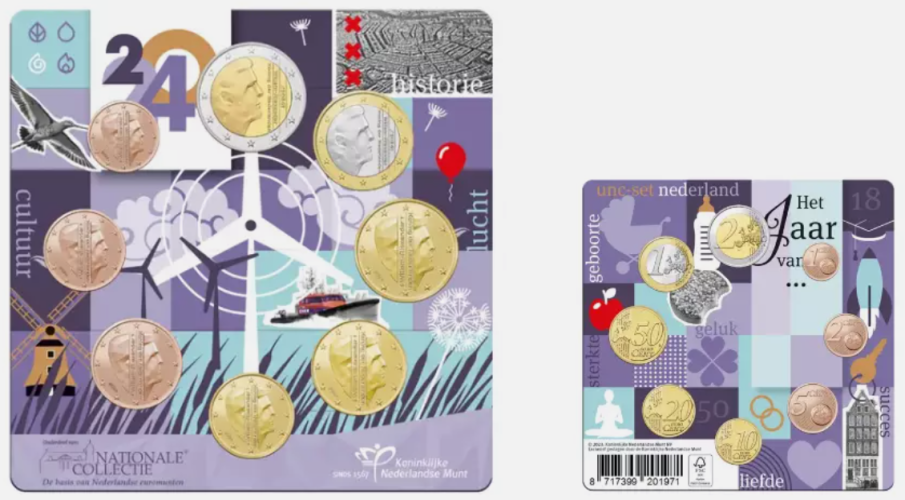 Série Euros Pays-Bas 2024 Plaquette 8 pièces 1 centimes à 2 Euros