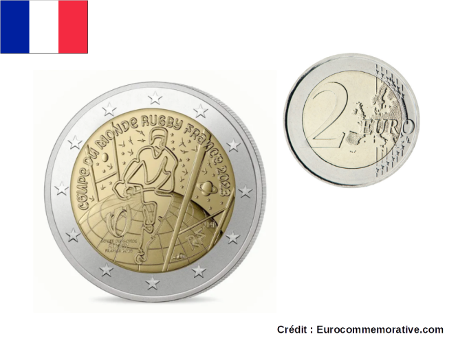 2€ Euros Commémorative France 2023 Coupe du Monde Rugby