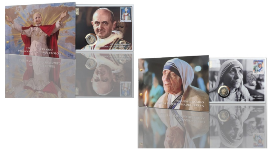 Lot 2 x Encart 2€ Euros Commémorative + Timbre Mère Térèsa + Paolo VI