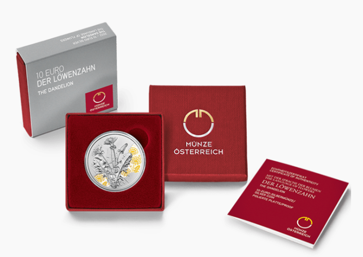 Coffret 10€ Euros Autriche 2023 Argent 925 Fleurs Pissenli / Dandelion COLORISEE