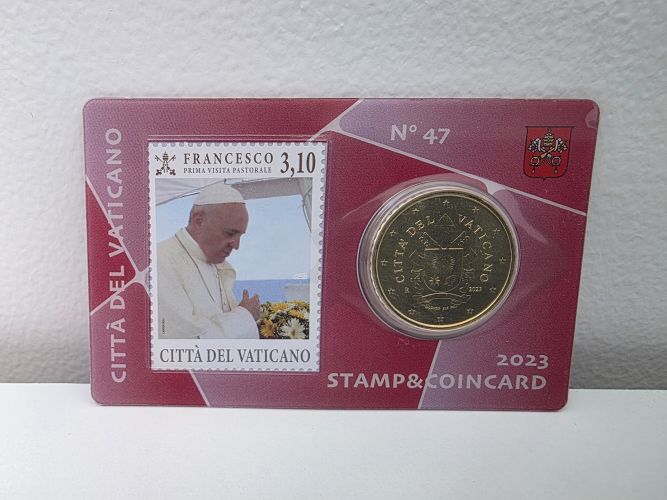 Coincard 0.50€ Centimes Euros Vatican 2023 n°47 Rouge avec Timbre